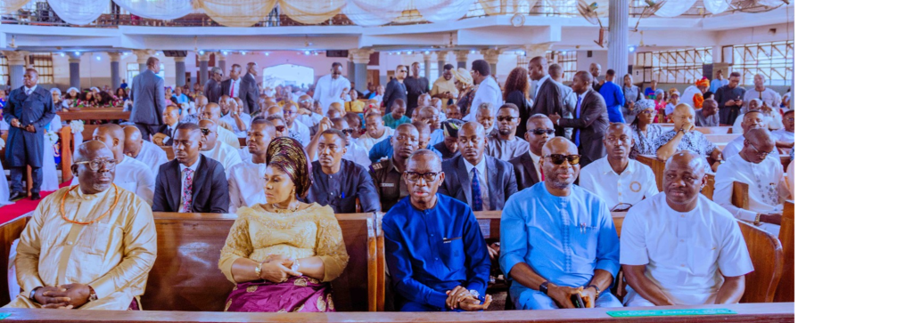 The funeral Mass, officiated by Catholic Archbishop of Benin, Most Revd. Augustine Akubeze, host Bishop Anthony Ewherido and Bishop Hyacinth Egbebo of the Catholic Diocese of Bomadi, clergy, was marked by prayers, hymns, and reflections on Utuama’s life of faith, public duty, and family devotion.