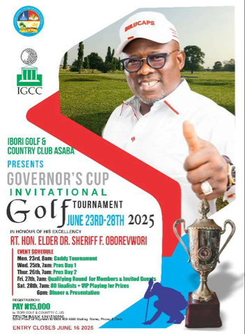 The Ibori Golf and Country Club (IGCC), Asaba, has unveiled plans for the maiden edition of the Governor’s Cup Invitational Golf Tournament, an event specially organized to commemorate the 62nd birthday of the Governor of Delta State, Rt. Hon. Sheriff Oborevwori, who turns 62 on June 19.